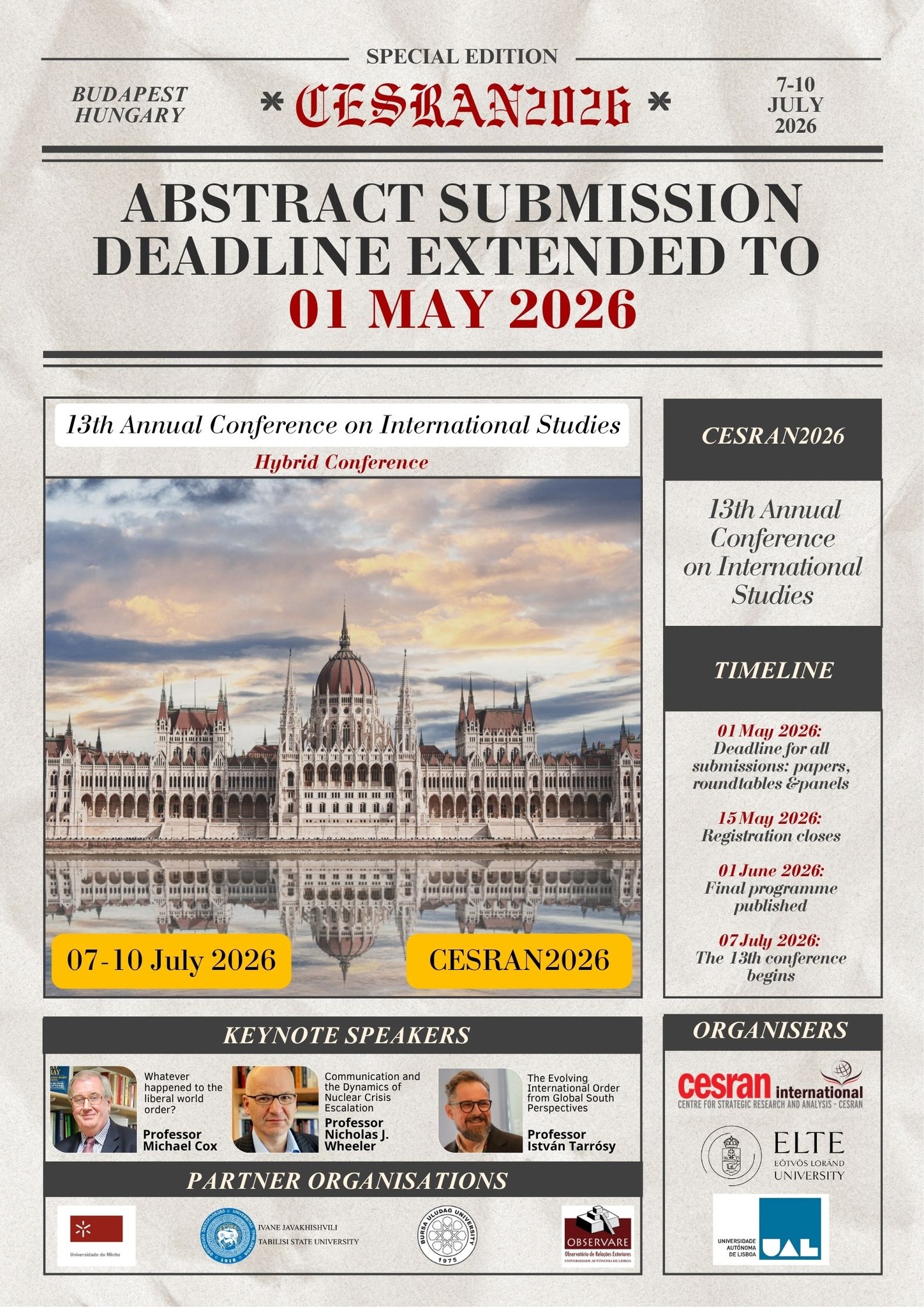 Abstract Submission Deadline Extended & Publication Opportunities Announced We are pleased to announce that the Abstract Submission Deadline has been extended to 1 May 2026 for the 13th Annual Conference on International Studies –...